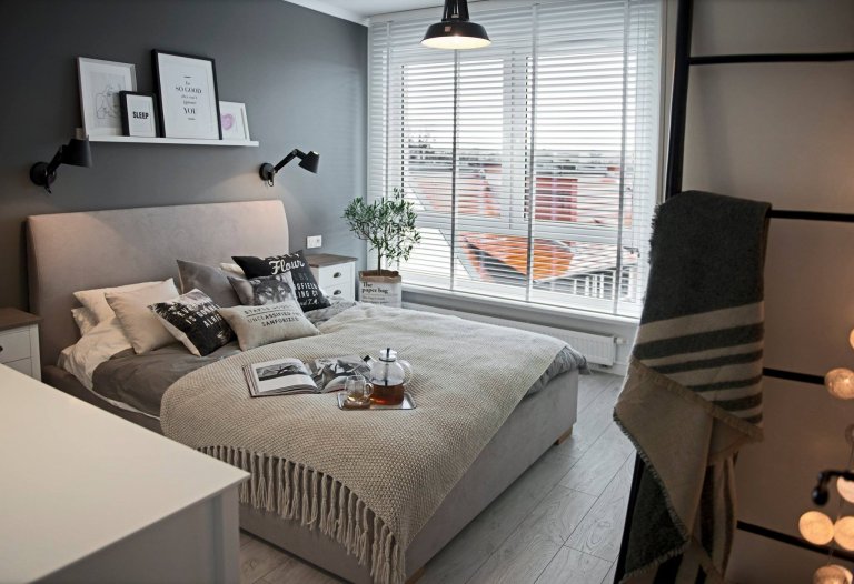 Ložnice má být místem, kde si člověk odpočine po náročném dni. Proto jsou vhodné tlumené barvy, se kterými studio zapadlo i do celkového konceptu interiéru. Tlumené a světlé barvy, spousta polštářů a textilií, to je to, co tvoří kouzlo domova. Naopak domácí pracovna je jedinou více barevnou místností v tomto prostoru. Prim zde hrají tmavě modré stěny v kombinaci se světlými prvky v podobě nábytku.