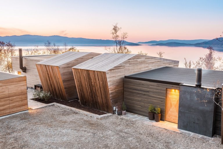Tento krásný víkendový dům se nachází asi hodinu jízdy od města Tromsø v severním Norsku. Lokalita, ve které se nachází, je opravdu neskutečná. Dům obklopuje nejen jezero, ale i les, který tvoří dostatečnou clonu poskytující soukromí. Celý dům má velmi nezvyklý design, protože je složen z více objektů, které nám mohou svým vzhledem připomínat krabice či kabiny.