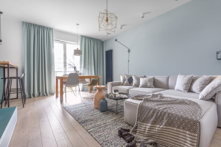65 metrů velký byt se nachází ve varšavském Żoliborz Artystyczny, prošel rekonstrukcí a nyní je plný skandinávského stylu oživeného tyrkysovými odstíny moře. Nechte se inspirovat, jak lze efektivně zvětšit malý byt a pracovat s barvami.