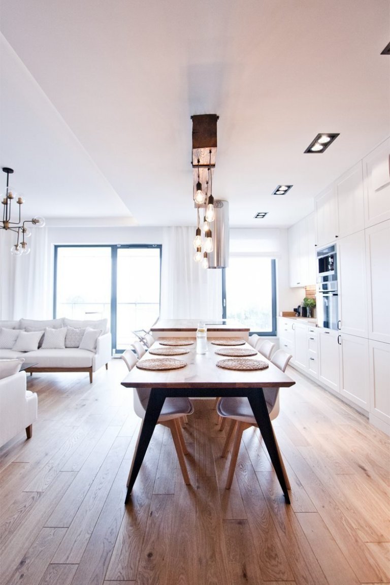 Ty už jsou dnes poměrně snadno dostupné v různých barvách a velikostech a jejich použití není o nic složitější než aplikace klasických tapet. Jejich obrovskou výhodou je fakt, že se hodí téměř do každého interiéru a vždy mu umí dodat osobitý šmrnc. A to i v bydlení, ve kterém se snoubí klasické vybavení s moderními prvky. Stačí vhodně zvolené doplňky, dekorace nebo pár kousků stylového nábytku, a celý interiér se změní k nepoznání. Na internetu je spousta inspirace, ale pokud přece jen nevíte, jakým směrem se ve svém interiéru vydat, začněte od podlahy. A nezapomeňte, že v jednoduchosti je síla. Klasická dubová podlaha s rustikálními prvky vám poskytne skvělý základ. Perfektně funguje téměř v každém interiéru. Působí útulně a nabízí možnost nespočtu kombinací. Tak tomu je i v interiéru, který v sobě kombinuje dubovou podlahu, cihlové obložení, dominantní bílou barvu a industriální prvky, které jsou zastoupeny zejména v osvětlení.