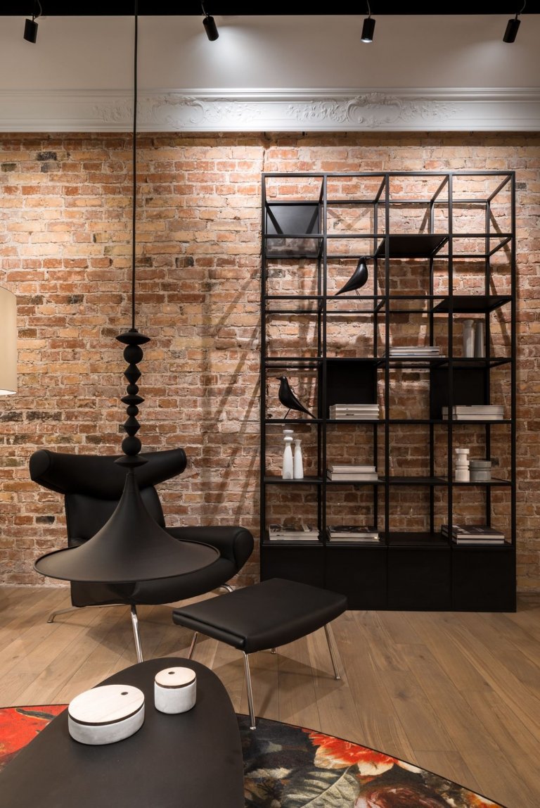 V celkové realizaci tohoto projektu hrají největší roli barvy a materiály, přičemž obojí je ještě podpořené hrou se světlem. Najdeme tu hodně bílé barvy konfrontované s černými odstíny, zasklení, cihly a mramor. Velkou roli však v tomto bytě hraje také nábytek a příslušenství. Obojí si přitom opět zakládá na originalitě a extravaganci.
