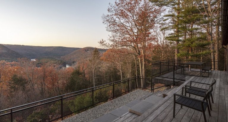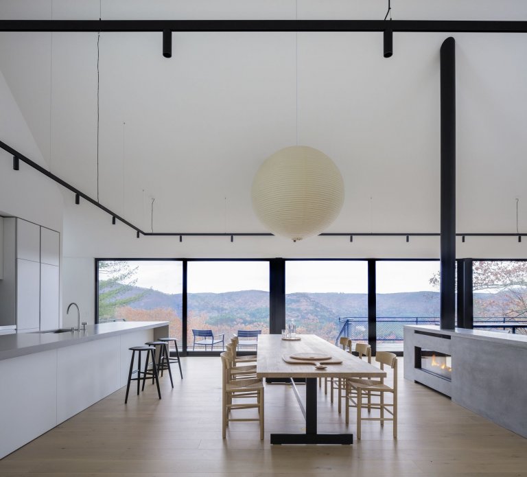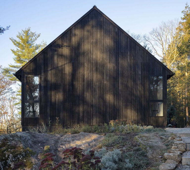 Černý štítový dům se zeširoka otevírá do zvlněné appalačské krajiny se zaoblenými vrchy a širokými údolími propletenými řekami. Zbrusu nové stavení čerpá z dědictví venkovské architektury a vytváří působivý domov s řadou velkolepých výhledů.