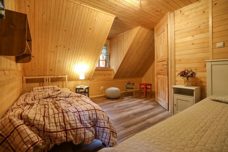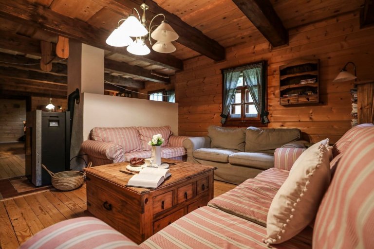 Až na několik funkčních výdobytků není ani z interiéru znát, že se jedná o novostavbu. Historie v ní dýchá ze všech stran. Nachází se zde zajímavé komody, truhly, lampy, ale třeba i staré rádio. Romantickou atmosféru v chalupě navozují i půvabná dřevěná okna se záclonkami ve venkovském stylu.