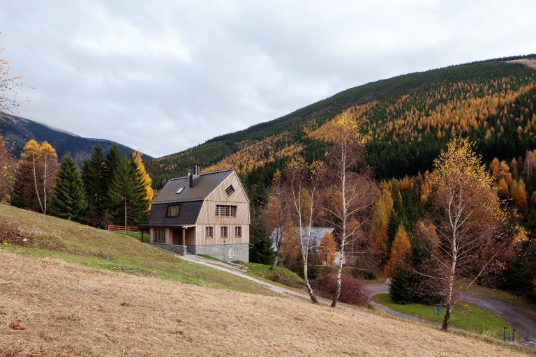 Chalupa už stojí dobrých devadesát let. Postavena byla z kamene a cihel, dochovala se i překrásná štuková výzdoba. Není se tedy čemu divit, že zaujala majitelku i její známou, designérku Odette Kmeť Fedorovou, která v domě spatřila obrovský potenciál. Poradila majitelce, jak interiér chalupy proměnit v malebné útočiště, a směle se pustila do práce.