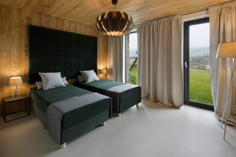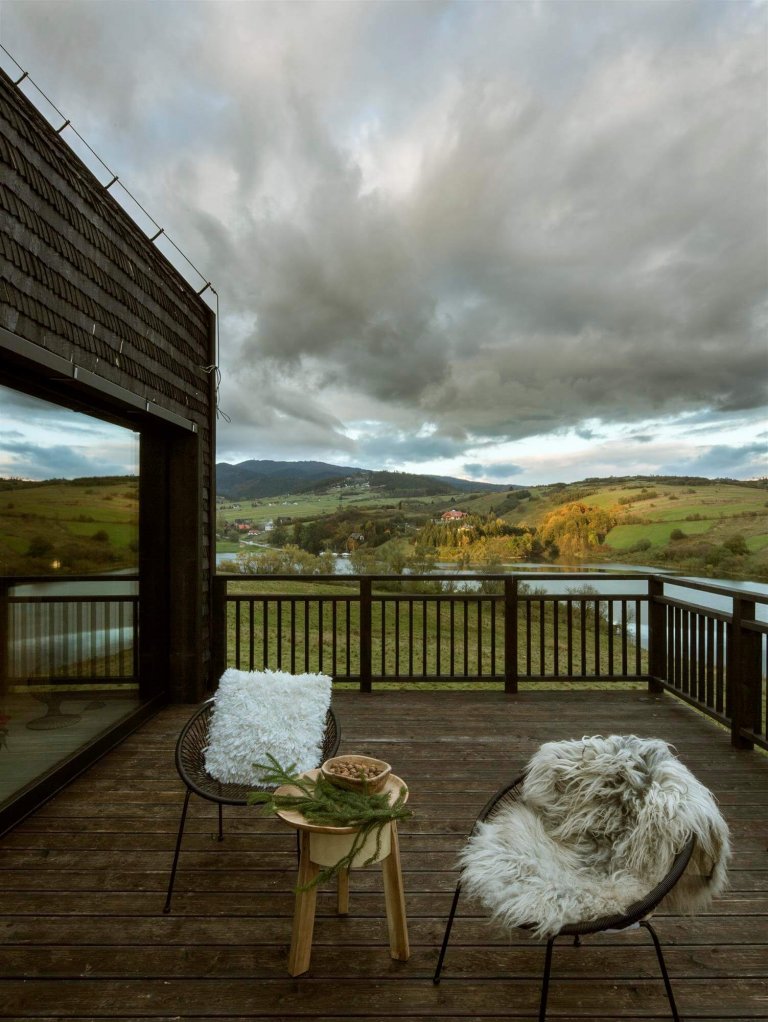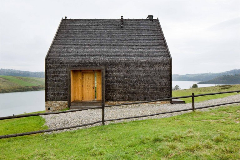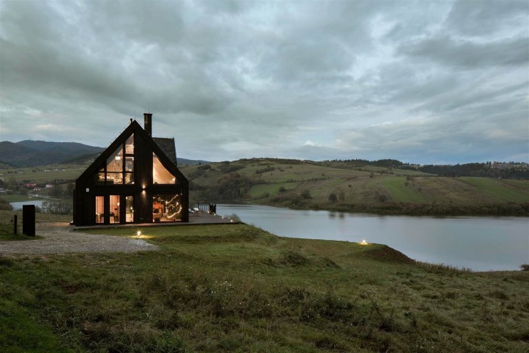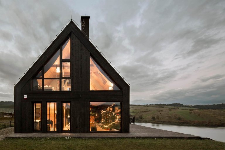 Dům se na první pohled z vnějšku nejeví velký. Uvnitř ale překvapí a nabídne dostatek prostoru. Tato chalupa, s neobvyklou fasádou, se nachází na břehu uměle vytvořeného jezera Czorsztyn v jižním Polsku. Pozemek domu se nachází na svahu s výhledem na jezero a dva středověké hrady. Rozčlenění domu bylo vytvořeno nejen s ohledem na světové strany, ale také s přihlédnutím k okolní krajině.