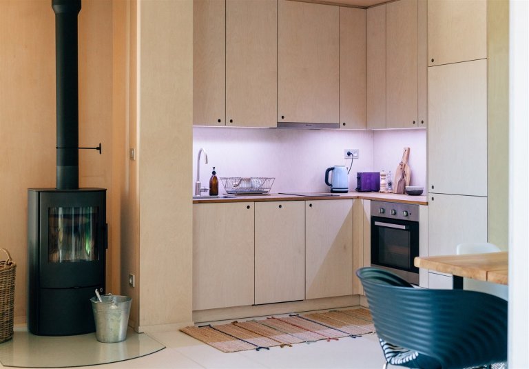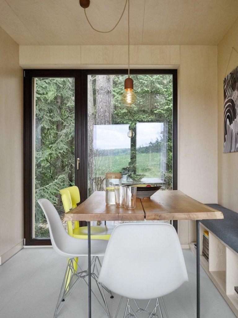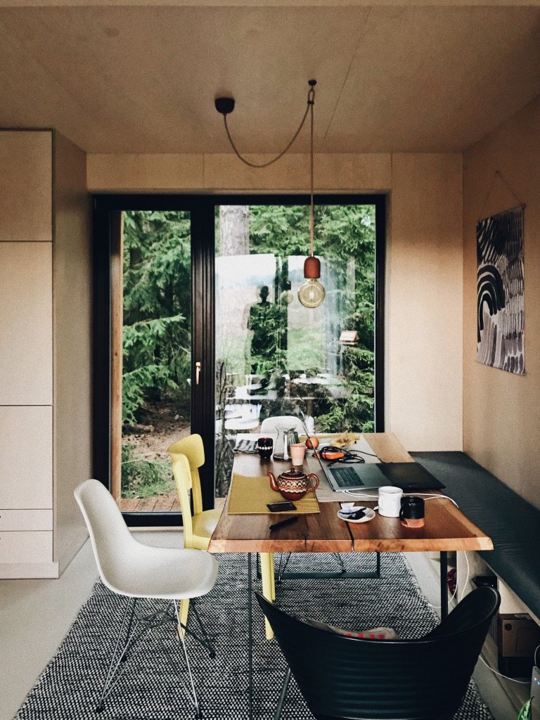 V případě této chaty byly použity dva kontejnery, které poskytly 70 m2 obytné plochy. Z originálního víkendového bydlení je nadšená i Karolínina maminka, která po bydlení v přetechnizovaném rodinném domě s inteligentním ovládáním uvítala jednoduše zařízený prostor. Také ona sledovala proměnu kontejneru s profesním zájmem. Stavebnímu oboru se věnuje už řadu let a do kontejnerového projektu Blokki vstoupila jako vystudovaná propagační výtvarnice zabývající se vizuální stránkou developerských projektů.