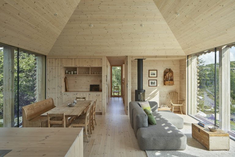 Studio Mork Ulnes Architects navrhlo víkendovou chatu o rozloze 145 metrů čtverečních v nadmořské výšce 943 metrů nad mořem v Norsku. Budova se nachází téměř na vrcholu hory Quitfjella a je vystavena drsným zimním povětrnostním podmínkám, čas od času se topí v oblacích, které ji občas úplně obklopují, a někdy mraky dokonce plavou v údolí pod ní. Dnes je architektura i o tom uchovat a přenášet znalosti z předchozích generací do současnosti a poskytovat efektivní komunikaci s okolní krajinou. Místní stavební materiály, tradiční technologie v kombinaci s novými nápady mohou vytvořit jedinečný a kreativní domov.