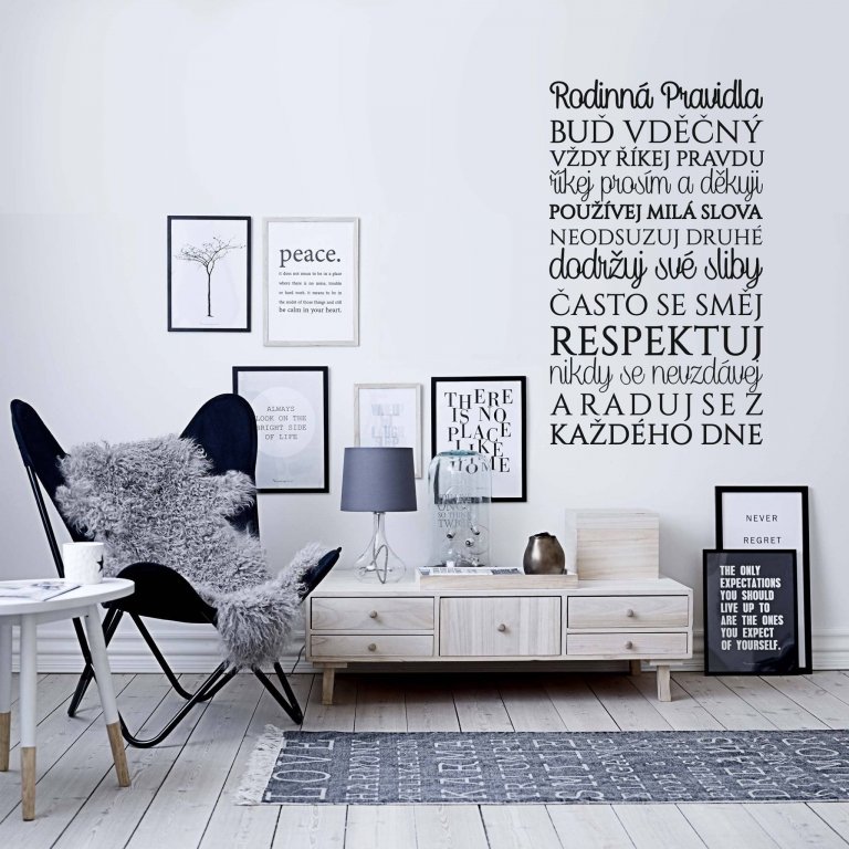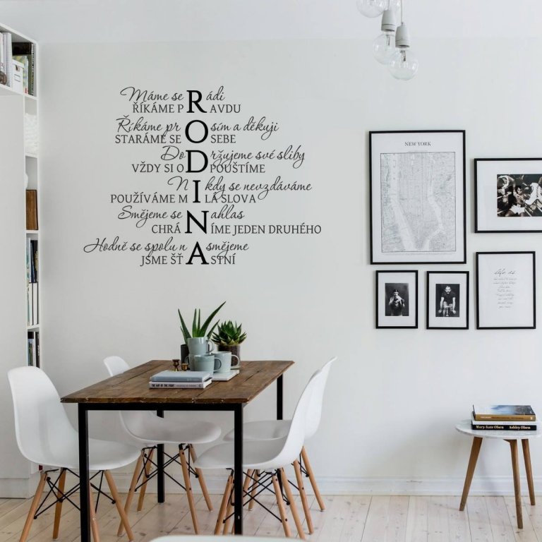 Vhodný citát, který zušlechtí vaše bydlení, je třeba vybírat s citem. V prvé řadě by se mělo jednat o nápis v českém jazyce, aby co nejvíce pronikl do vaší mysli. Cizojazyčné nápisy jsou sice cool, ale v českých domovech nepůsobí autenticky. S nápisem na zeď v rodném jazyce navíc vyjdete vstříc jazykově nepříliš vybaveným návštěvám. Co se týče textu, který se do interiéru rozhodnete začlenit, je jeho výběr na vás a vaší rodině. Ať už to bude citát, motto nebo jen pár slov, mělo by jít o slova, která vám mluví z duše. A která, jakmile na nich spočine váš zrak, vás okamžitě nabijí energií. Nemusíte se přitom bát omezené životnosti takových nápisů. Je totiž jasné, že pro každého z nás je v dané životní fázi důležité něco jiného. Nápis, který svým myšlením a životním směřováním přežijete, však můžete bez problémů vyměnit.
