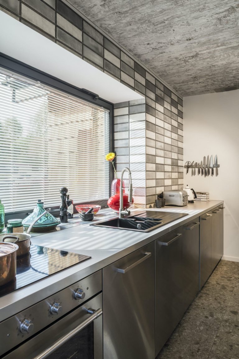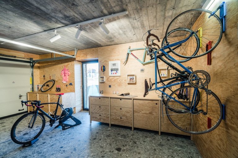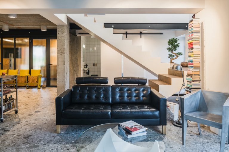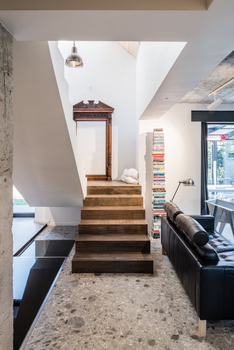 Stačil zásah architektů, aby se z klasického katalogového domu stal moderní a překvapivý objekt se zajímavou a moderní estetikou, i při zachování původní podoby. Předmětem rekonstrukce byl hotový dům z katalogu o rozloze 220 m2. Dříve byl značně rozdělen příčkami na mnoho malých pokojů. Architekti se rozhodli prostor otevřít a většinu příček v přízemí zrušit. Nahradily je černé ocelové trámy, opírající se o železobetonové sloupy. Změnou uspořádání vzniklo místo pro saunu, pokoj pro hosty, úschovnu kol, tělocvičnu a pracovnu.