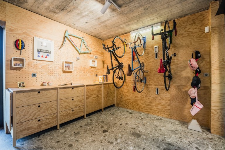 Interiéry jsou kombinací modernosti a lidové architektury. Tento kontrast je patrný v rozdělení domu. Přízemí je chladné a moderní. Dominuje zde beton, bílá a šedá barva, které jsou skvělým zázemím pro vystavení obrazů a užitého umění. Soukromý prostor, tj. podkroví, má zcela odlišný charakter - je zde teplo a útulno. Smrkové dřevo tu vládne. Je kombinováno s černou podlahou, která narušuje jednotnou barvu interiéru. Celek je doplněn koupelnou z kamene a žulových desek. Ty mají připomínat horskou jeskyni, která se vyskytuje v oblasti, kde leží údolí Kluczwody.