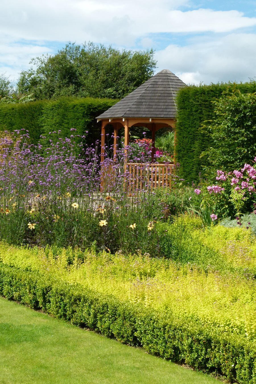 Zahrada se neustále proměňuje, protože často vyrostou rostliny na zcela nečekaných místech. Manželé sázejí květiny od semínek, tak je vždy překvapením, kde a v jakém množství vyrostou. Od jara do podzimu tak postupně záhony zarůstají a stále mění své barvy. Harry a Lynda Rowlinsonovi trvají na tom, že s takto rozlehlou zahradou nepočítali. „Když jsme se před 25ti lety do Abbey Lane přestěhovali, zajímala nás jen krásná krajina hrabství Cheshire a pocit prostoru,“ vzpomínají manželé. Ze začátku neměli na zahradničení tolik energie. Museli totiž vychovávat čtyři nezbedné děti. „Jak ale rostly, měli jsme stále více času,” říká Harry. „Byl jsem hlavní pracant, zatímco Lynda plánovala. Často jsme dřeli celý víkend. Báli jsme se, aby naše práce nepřišla vniveč. Uvědomovali jsme si, že jsme amatéři a chtěli jsme se vyvarovat velkých chyb.” Proto oslovili zahradního designera Davida Stevense, který navrhl hlavní část zahrady. „Základem bylo změnit tenisový kurt, který tu tehdy byl a udělat z něj centrální část zahrady. Teď je tu místo něj podlouhlá velká nádrž, lemovaná záhony s tulipány, jiřinami a krásenkami. „Harry a Lynda byli plní entuziasmu a začali okamžitě pracovat. Během deseti let se zahrada úplně proměnila,“ pochvaluje si spolupráci David Stevens.