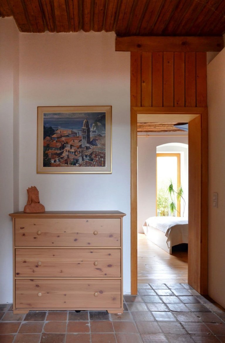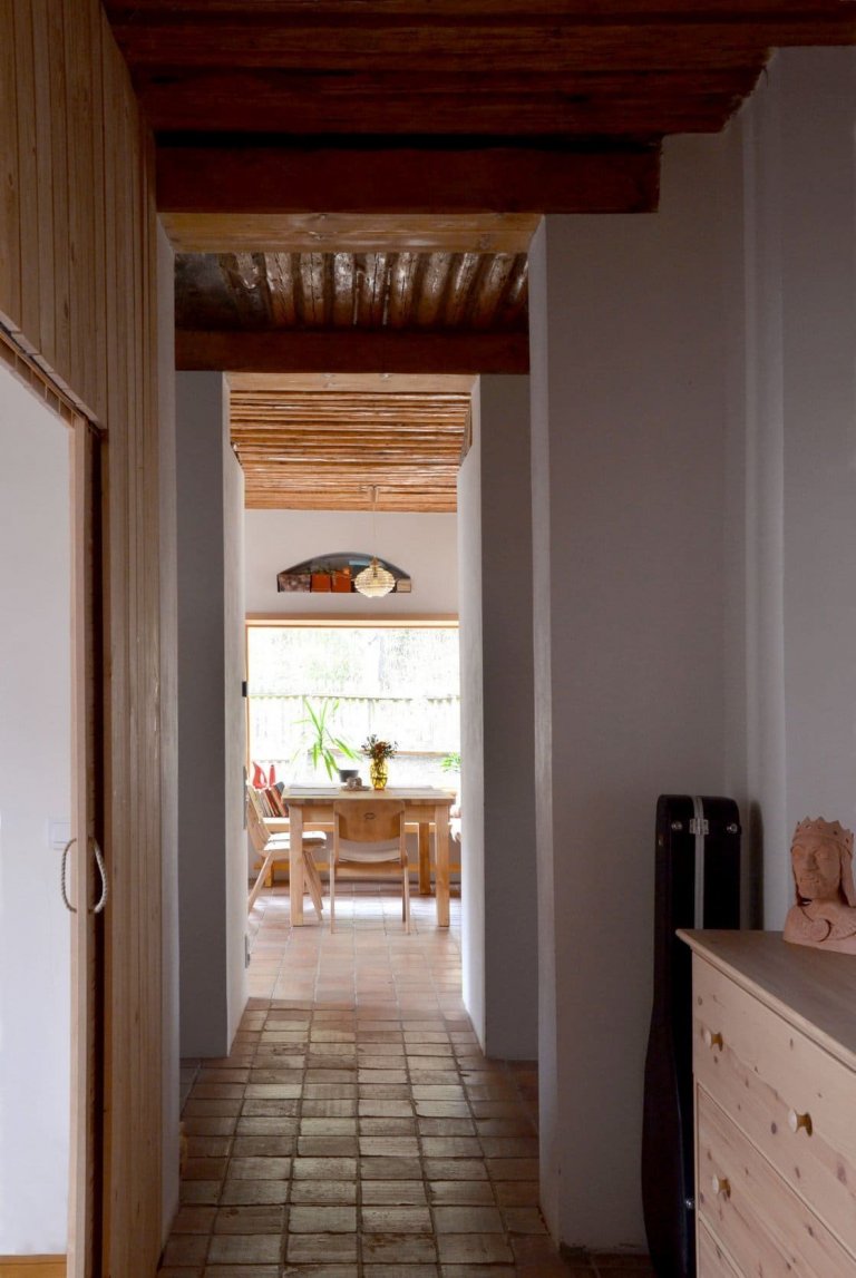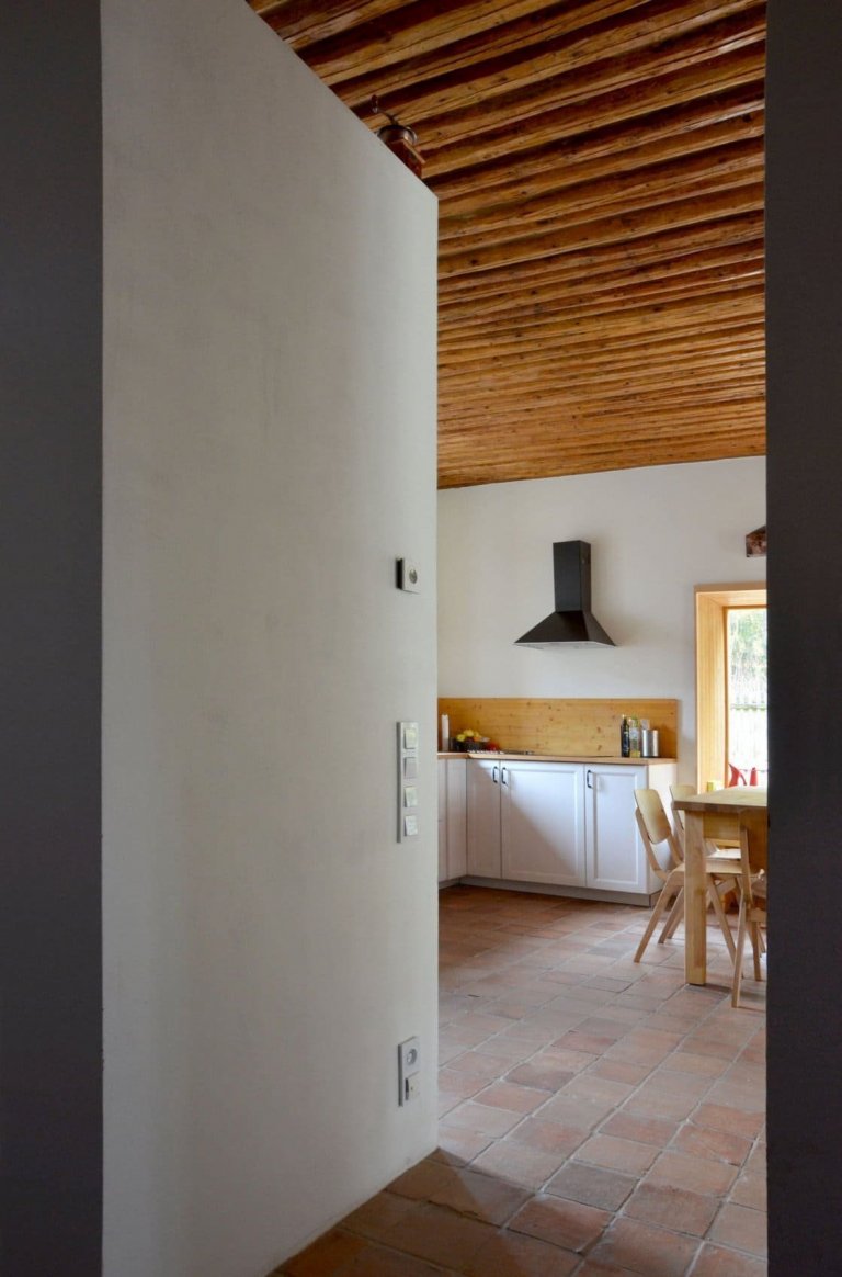 V případě rekonstrukce tohoto domu je inovativním řešením paradoxně návrat k tradici, který je však přizpůsoben současným požadavkům na komfortní bydlení. Najdou se zde tedy jak moderní prvky, tak tradiční. K těm druhým zmíněným patří například masivní dřevěné překlady a průvlaky. Jejich hrany jsou často nepravidelné, protože byly záměrně opracovány spíše hrubším způsobem. Účelem architekta totiž bylo podpořit haptičnost stavby, kterou je tak možné zakoušet nejen zrakem, ale i hmatem. Proto je výsledný detail spíše tesařský než truhlářský. Nádech starých časů však v domku připomínají také další prvky. Řadí se k nim podlahy ze starých půdovek nebo povalový strop. Ten byl předtím skrytý pod rákosovým stropem, a tak i on musel projít proměnou. Původnímu charakteru domu fandí rovněž nábytek, který už má za sebou nějaký ten příběh.
