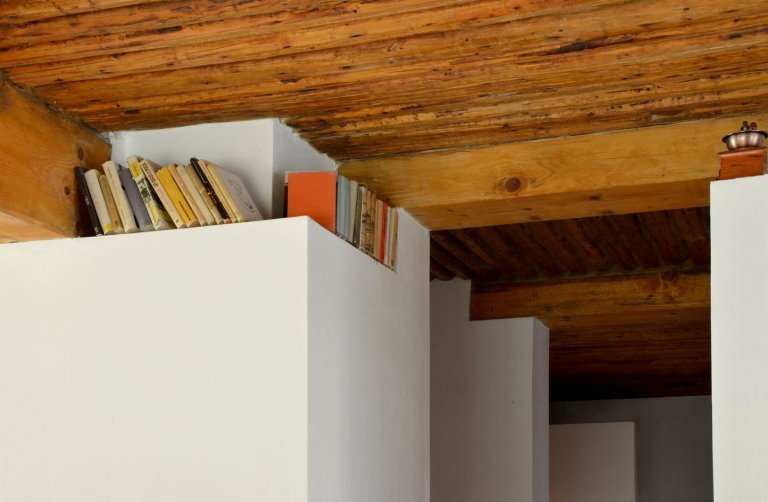 Od začátku bylo jasné, že domek s hornickou minulostí nutně potřebuje zásadní proměnu. Dříve sice jedna jeho část byla zrekonstruována, ale ne příliš šťastně. Jako izolace podlah byly například použity prázdné PET lahve. Proto, aby byla napravena všechna předchozí nešťastná řešení, proběhla nyní rekonstrukce domu opravdu od podlahy. Začalo se tedy velkým bouráním, po kterém z domu zůstaly prakticky jen čtyři obvodové zdi, části nosných zdí a povalový strop. Poté bylo zapotřebí dům zespodu důkladně provzdušnit, o což se postarala profilovaná fólie s výškou nopu 7 cm. A protože si to noví majitelé přáli, došlo také k úpravě dispozic domu, při které byl obnoven také hlavní vstup do domu od ulice. Potom už přišly na řadu rozvody vody, elektřina a nová okna. V domě však zůstaly zachovány i staré okenní výklenky, z nichž nově vznikla úložiště pro knihy. Dalším krokem bylo vytvoření obytného podkroví z původní klasické půdy. Došlo tedy k přizvednutí věnce o 60 cm a na něj pak byla posazena nová střecha. Řešení přestavby domu přitom vycházelo z velkorysého propojení vnitřních prostor, respektujícího logiku původního konstrukčního rastru ve tvaru písmene H, který byl výrazně patrný na prapůvodních půdorysech z archivu.