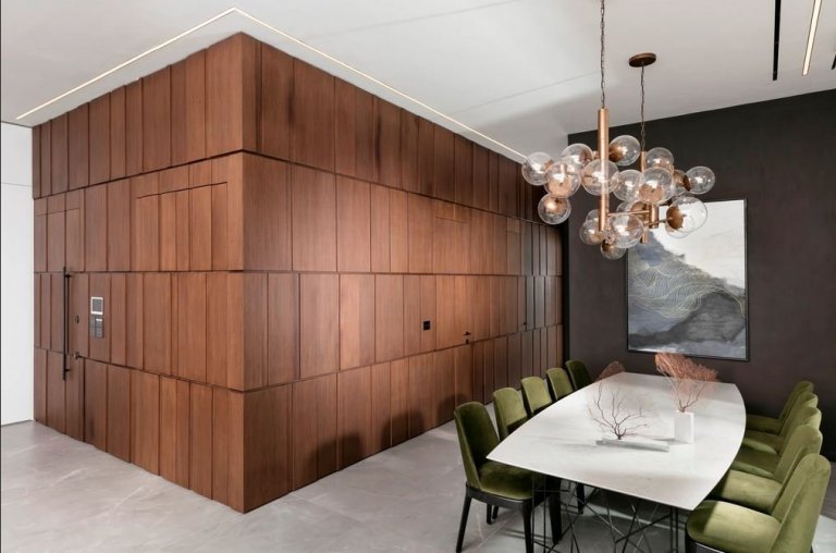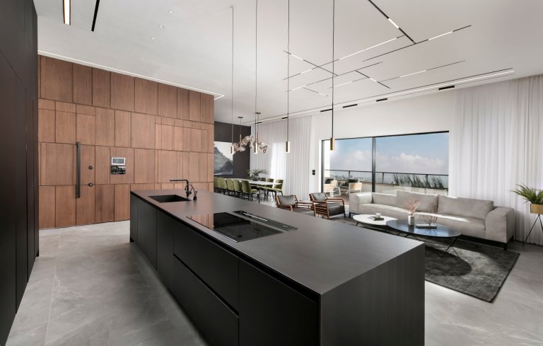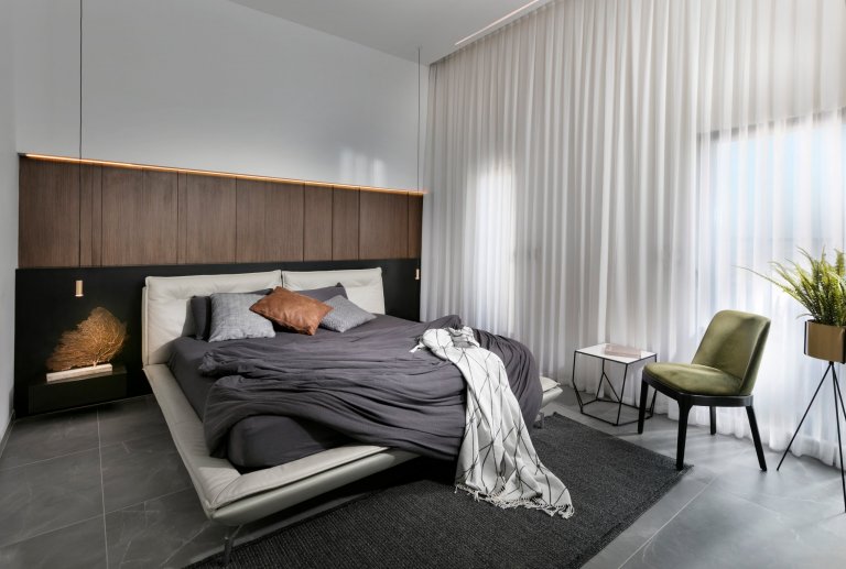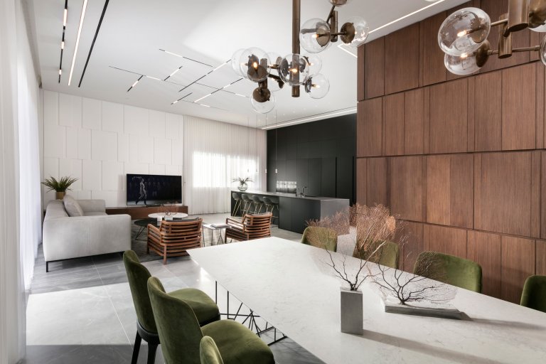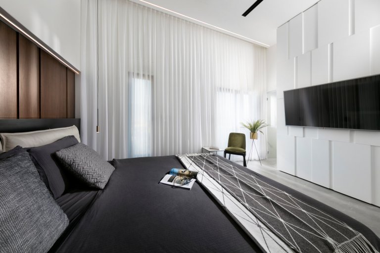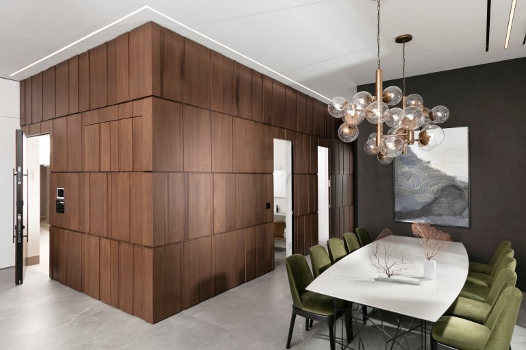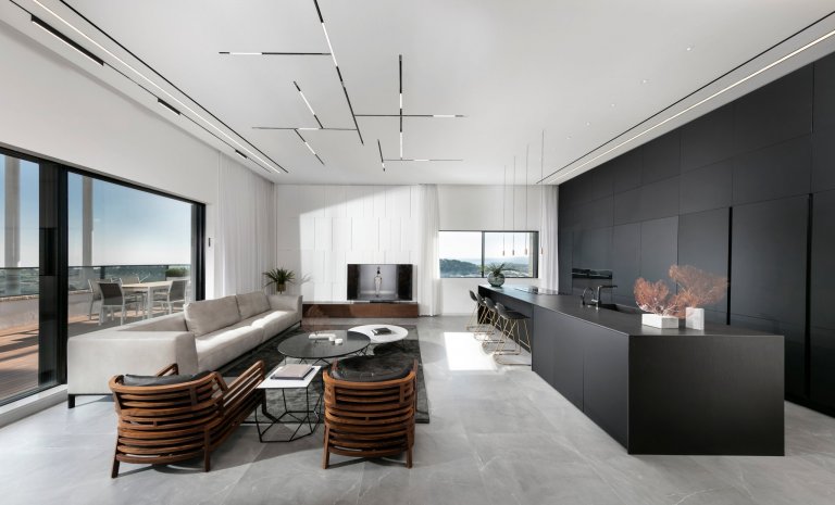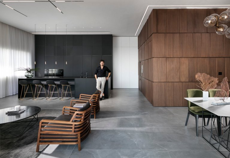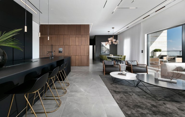 V jedné z nejluxusnějších budov Jeruzaléma vznikl krásný podkrovní byt ozdobený dřevěnou kostkou. Ta pomáhá oddělit společenské prostory od soukromých, navíc je osobitým designovým prvkem celého interiéru.