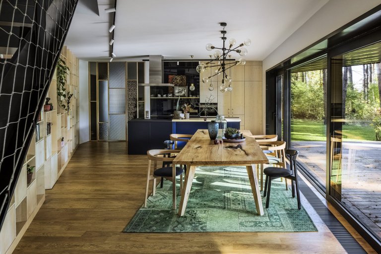 Na okraji Varšavy tak vzniklo svěží bydlení plné invence. Vyhlíží do daleka zpod vzrostlých stromů a užívá si ničím nerušené pohody, za kterou vděčí zejména kráse přírodního bohatství.
