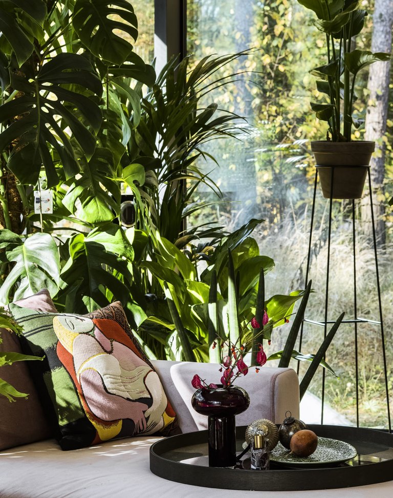 Majitel domu miluje květiny. Prostor pro ty exotické tak vznikl přímo v proskleném přízemí. Další zahrada vznikla přímo na terase v prvním patře, na kterou lze vejít přímo z ložnice. Zajímavostí pak je, že koupelna příslušící k ložnici umožňuje otevřít skleněné dveře na terasu. Jakmile přijdou teplé dny, mohou se obyvatelé domu sprchovat na dosah přírodě.