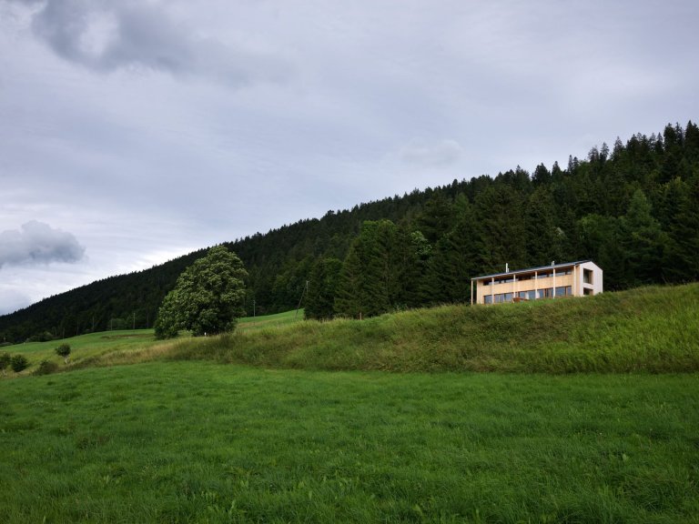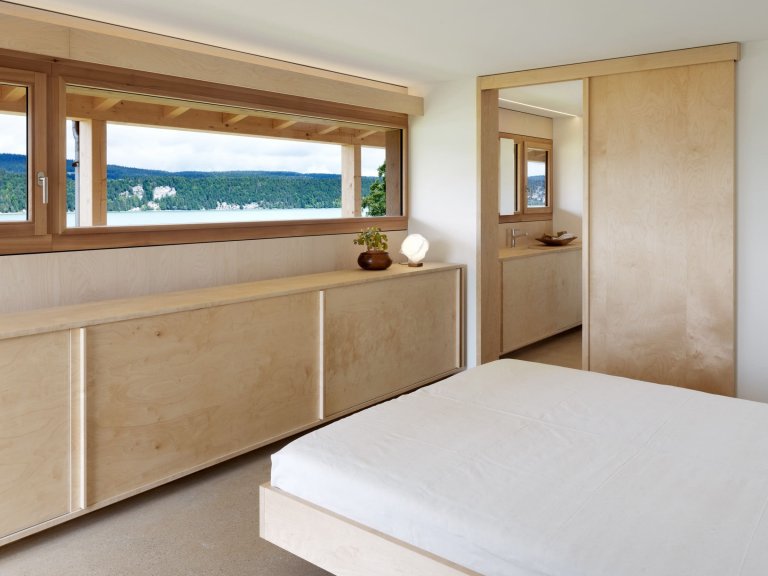 S lesy v zádech a jezerem před sebou tak uprostřed úchvatné švýcarské krajiny vyrostl dům, který přirozeně splývá se svým okolím. Je v neustálé komunikaci s přírodou a svým obyvatelům poskytuje dostatek tolik důležitého soukromí.