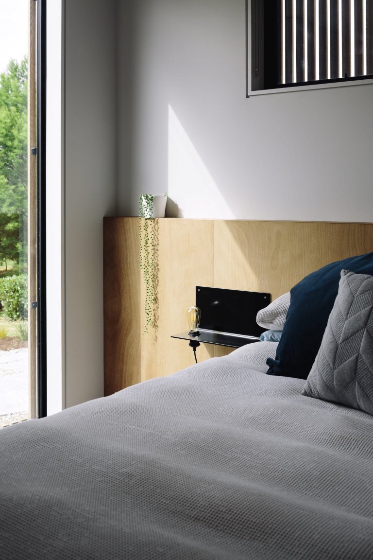 Daniel se snažil minimalizovat stavební plochu a odpustit si ne tak potřebná místa, jako třeba garáž. Pohodlí uvnitř domu mělo přednost. Zároveň doufal, že snížení plochy nebude mít vliv na úroveň pohodlí v domě. Sádrokarton a borovicové dřevo jsou dva hlavní materiály použité při výzdobě interiéru. Byly natřeny bílou barvou, aby dosáhly čistého, minimalistického stylu a dům se opticky zvětšil. Hliníkové a ocelové díly jsou černě lakované. Dřevěné panely a podlahy zůstaly v jejich přirozených odstínech.
