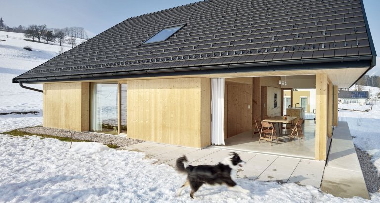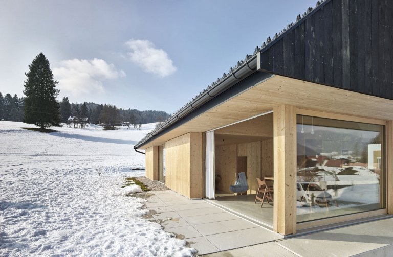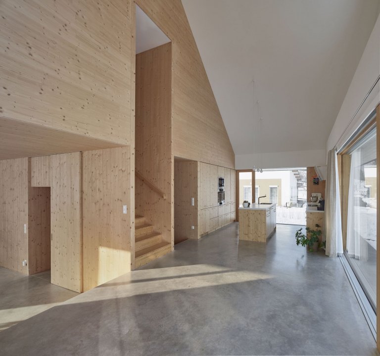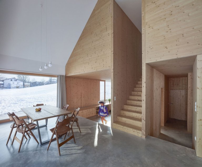 Když se podíváme na místo, kde dům stojí – hory, průhled do údolí Windischgarstener a louky s lesy, které se nachází přímo za domem, bylo architektům ze studia MIA2/Architektur jasné, že i samotný dům by měl do okolí zapadat. Právě proto se majitelé i s architekty rozhodli, že by bylo nejlepší, postavit dům v tradiční místní architektuře se sedlovou střechou, výraznějším štítem a oknem, které celý vzhled domu ozvláštní.