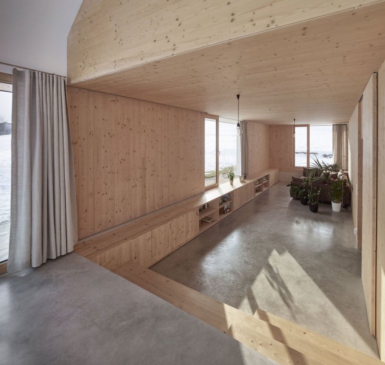 Hlavním cílem architektů bylo postavit dům, ve kterém bude hrát prim dřevo spolu v kombinaci se sklem a betonem. Díky tomu měl vzniknout nejen hezký, ale i praktický interiér, ve kterém bude radost trávit svůj volný čas. Co je na celém interiéru krásné – všechny prostory jsou jasně odděleny, ale zároveň na sebe plynule navazují.