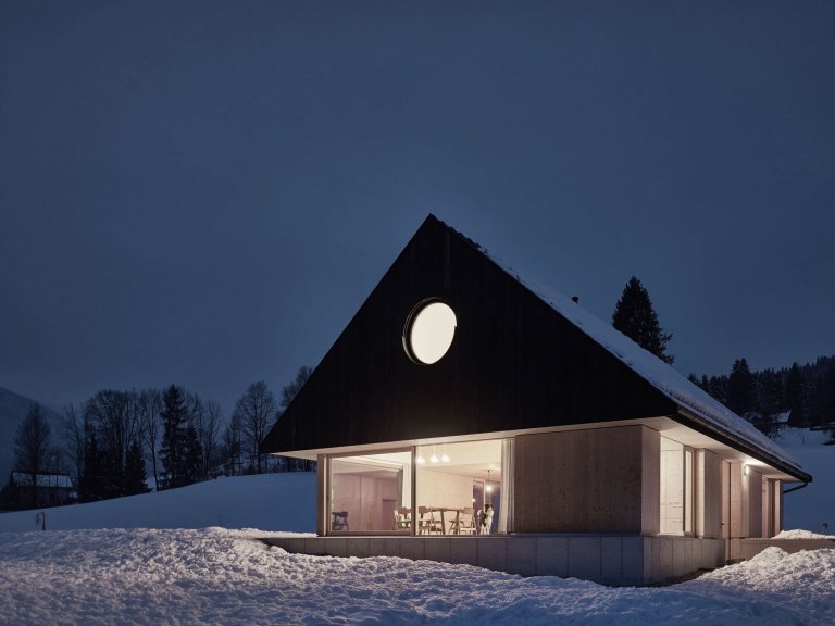 Říká se, že v jednoduchosti je krása. To, že je toto tvrzení pravdivé, nám dokazuje i tento dům nacházející se na úbočí rakouského Roßleithenu, který vyniká svojí jednoduchostí a mezi jeho největší oživení se dá považovat kulaté okno, jež se nachází ve štítu domu.