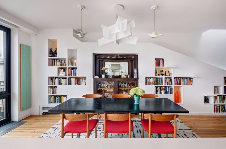 Interiér řadového domku se díky nápaditým architektům uzpůsobil přání jeho nových vlastníků. Sálá z něj barevná hravost, cit pro detail, odvaha experimentovat i dát na odiv osobitý vkus. Srdcem samotného interiéru jsou přitom knihy a umění. Tak proč tyto skvosty skrývat za sklem nebo ve skříních? Právě otevřenost a vzdušnost, to jsou hlavní kvality řadového domku v Brooklynu, městě, kde se mimo jiné narodil například slavný spisovatel Joseph Heller.