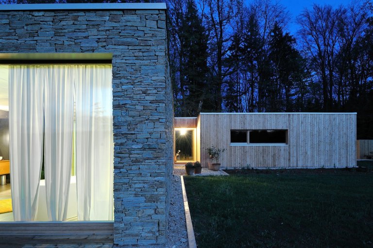 Do stavby tohoto domu v Jerneji se pustilo architektonické studio AB objekt d.o.o., které má na svém kontě hned několik úspěšně realizovaných projektů. Celý projekt na tento dům vzniknul v roce 2013, a samotná realizace proběhla roku 2016. Dům je jednopodlažní, ale díky svému půdorysu ve tvaru písmene L nabízí uspořádání místností v logické posloupnosti, kdy je společenská část oddělena od té soukromé, což zajišťuje naprosté soukromí. U domu nechybí ani krytá terasa, která umožňuje rozšířit obývací prostory na maximum.
