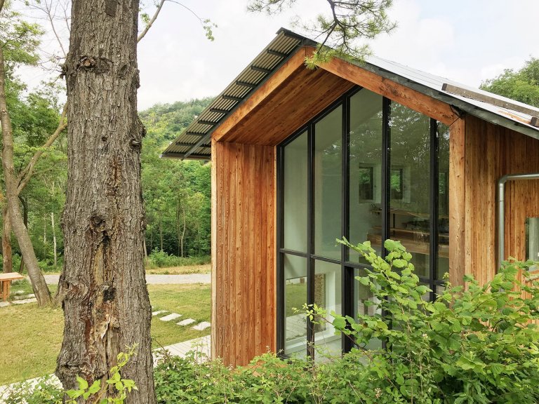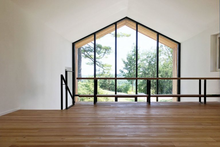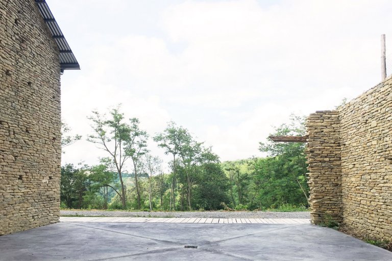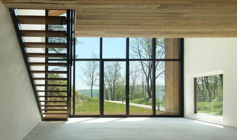 Dům v domě je propojený s historií i s přírodou. Namísto původních malých oken se do okolí otevírá velkorysým prosklením. Interiér je tudíž nejen dostatečně prosvětlený, ale také plný překrásných výhledů. Část domu přitom díky clonícím stromům nabízí příjemné soukromí. O propojení s přírodou se stará také terasa včetně zahradních cest. Symbióza mezi domem a přírodou je dokonalá. Od polní cesty se kolemjdoucím ukazuje nejprve část střechy, která vyčnívá ze zalesněného kopce. Po příchodu do zahrady už se objevuje celá úchvatná kompozice vytvořená úzkým vztahem architektury a přírody.