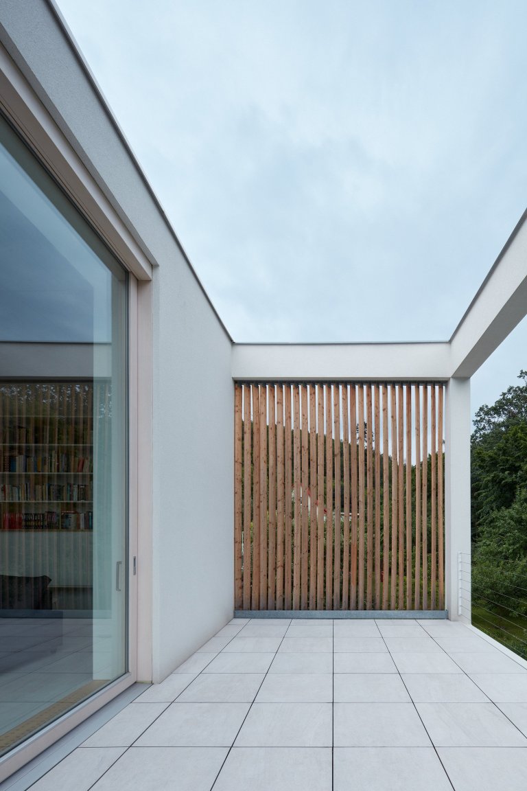 Ve výsledku tak uprostřed krásné krajiny vznikl moderní, praktický a nápaditý dům. Nenarušuje charakter svého okolí a navíc do architektury vrací tradiční výminek v novém hávu.