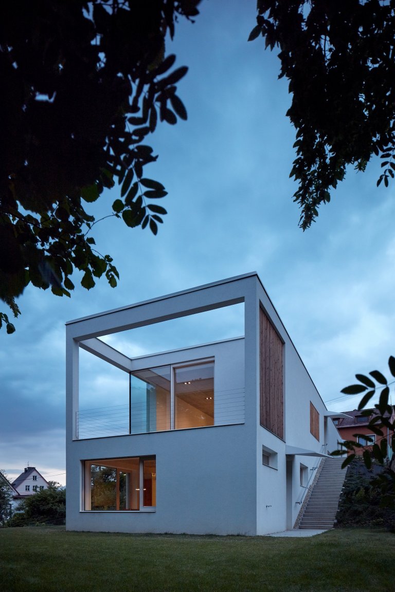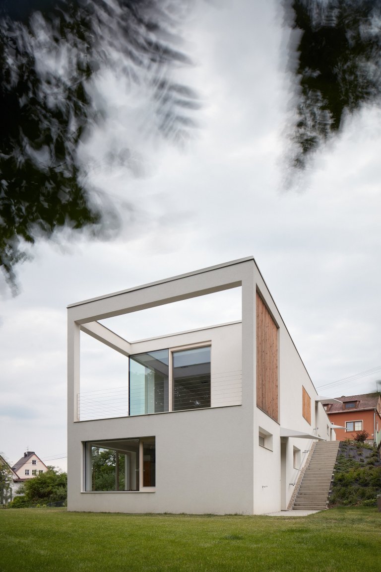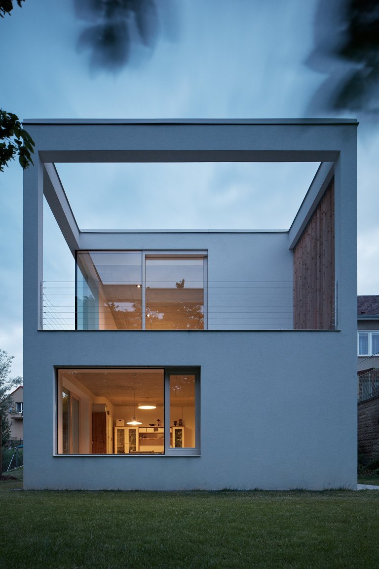 Architekti Pavel Martinka a Ondřej Spusta ze studia Masparti se v prvé řadě museli vypořádat s prudkým svahem parcely, na níž měla třígenerační stavba vyrůst. Citlivé zasazení domu do svahu se jim nakonec podařilo na jedničku a dosáhli přitom i toho, že nedošlo k narušení dojmu z okolní přírody ani stávající zástavby. Průhled na blízký les tak pro obyvatele domu na protější straně ulice zůstal zachován. Dům respektuje své okolí také svou vzhledovou jednoduchostí a umístění své části pod terén. Nenarušuje charakter zdejší zástavby záplavou barev a tvarů, veškeré jeho prostory včetně venkovní terasy jsou obsaženy v jedné hmotě.