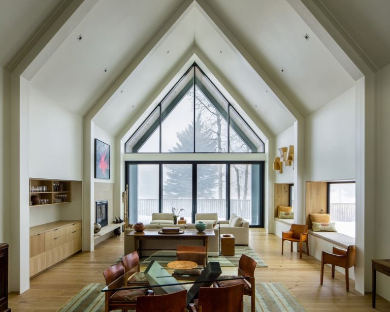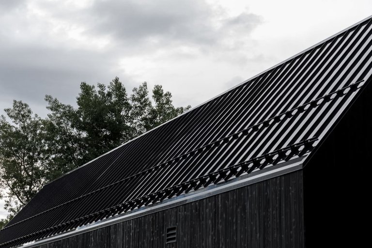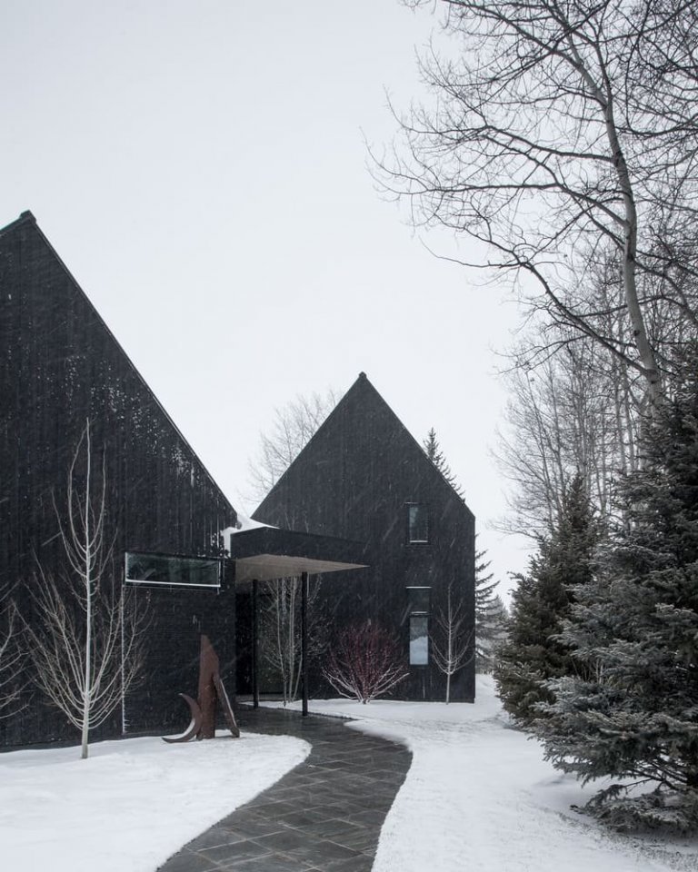 Dům je stylový a kontrastuje se dřevem bříz, které stojí nedaleko. Z ulice je fasáda skromná a jednoduchá, ale za ní se postupně objevují zajímavější prostory a výhledy. Klenuté stropy odrážejí špičaté linie střechy. Teplý rozsah v interiéru kontrastuje s hustým a tmavým stínem cedrového dřeva v exteriéru. Fasády domů jsou potaženy texturovanými cedrovými dřevěnými prkny, které jsou zabarveny černě a krásně kontrastují s okolní přírodou. Sedlové střechy jsou pokryty antireflexním černým kovem. Cílem oken, včetně světlíků, je zachovat soukromí, přirozené světlo a estetiku exteriéru budovy. V létě je dům ukrytý mezi zelenými stromy a v zimě vyniká proti zasněžené krajině.