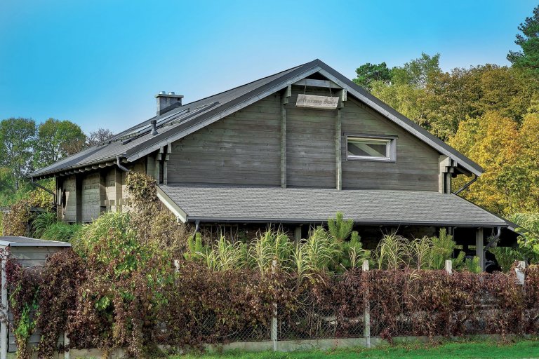 Myšlenka zařízení domu majitele napadla v Norsku. ,,Manžel tam jezdil na školení. Spolu jsme tam pak byli na mnoha návštěvách a zaujala nás velmi tamní architektura. Domy s dvojitými střechami nás inspirovaly. Pro náš dům jsme se rozhodli vytvořit svou variaci na takovou střechu, kdy kromě klasické šikmé střechy je z průčelí domu ještě jedna, vytvářející zastřešený vstup do domu. Také barvou domu jsme se v tamním prostředí nechali inspirovat. Barva vybledlého dřeva větrem a deštěm, až se stříbrným vzhledem, to bylo to co jsme chtěli již od začátku." Říká majitelka domu paní Agnieszka. Dnes se takového efektu nemusí dosáhnout pouze čekáním až dřevo zbledne. Existují nátěry, které takový odstín vytvoří ihned a není potřeba čekat. Vyhnete se tak postupnému zdlouhavému procesu, během kterého je dřevo flekaté a barevně nestejnorodé. Ale zpět k samotnému domu.