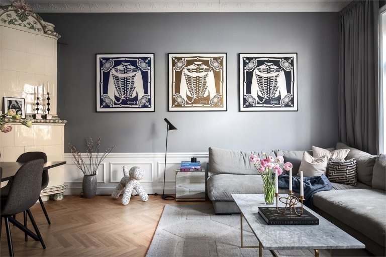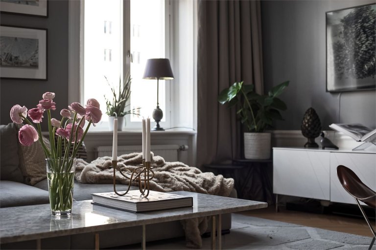 Historický dům v hlavním městě Švédska ukrývá elegantní interiér, který hraje hned několika odstíny šedé barvy. Nechybí v něm sametový dotek růžové barvy, který se spolu s bílošedou paletou postaral o útulnost tohoto netradičního bydlení.
