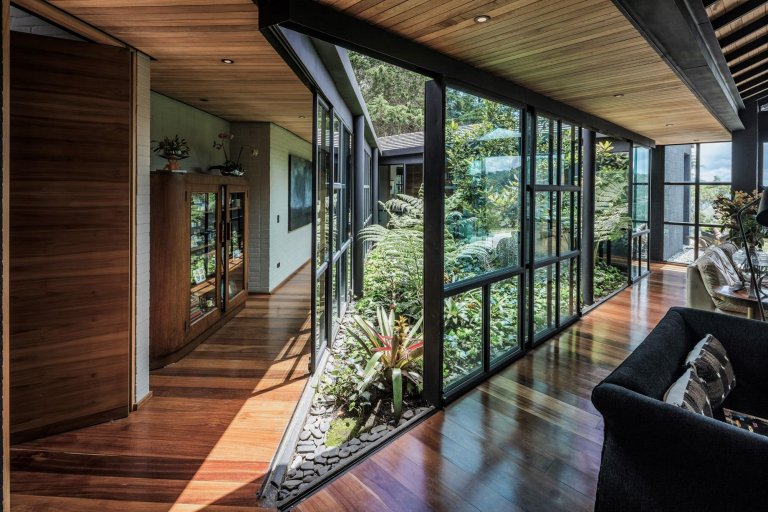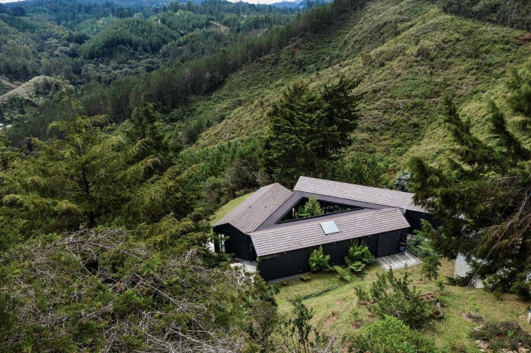 Ve městě El Retiro v Kolumbii vyrostl působivý trojúhelníkovitý dům obklopující úchvatné atrium plné zeleně. Stal se svěžím domovem starší dámy, která se rozhodla pro ničím nerušený život uprostřed krásné přírody.