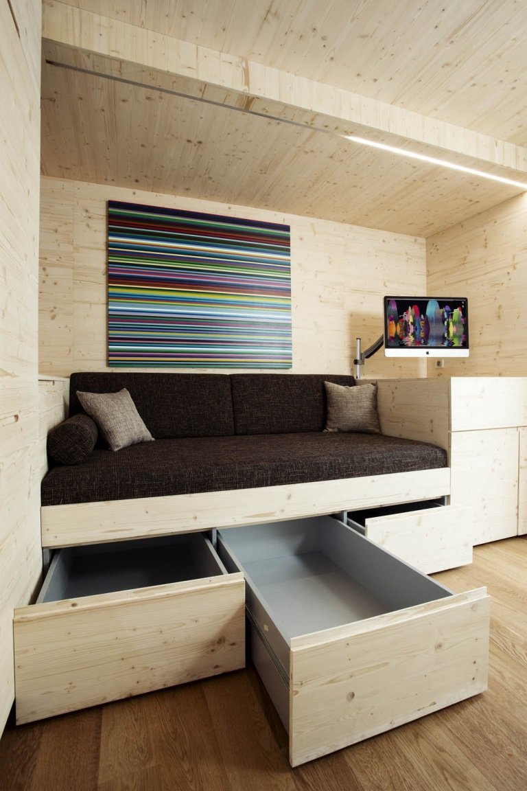 Jednoznačné plus freedomku tkví v tom, že se vyrobí v dílně a na určený pozemek je pak dopraven už jako kompletní dům – plně zařízený a ihned k dispozici pro nastěhování. Pro snadnou přepravu freedomku je dobře uzpůsobena už jeho dřevěná konstrukce, se kterou pak jeřáb nemá sebemenší problém. Díky tomu lze takový freedomek postavit klidně i na ponton nebo na plochou střechu, i když je třeba takový počin nejprve konzultovat se statikem a zvážit i celou řadu dalších specifických okolností.