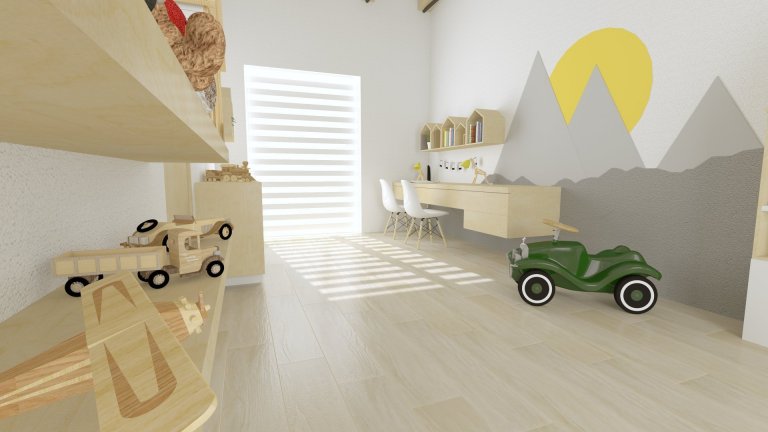 Fantazii se u nás meze nekladou, zvláště pokud jde o design dětských pokojů. A jelikož jsou tematické pokoje pro nás vždy velkým potěšením, měli jsme opět možnost použít typické designové prvky i do dětského pokoje. Jste zvědaví na výsledek? Čtěte dál. Zadání bylo jasné. Navrhnout interiérový design do podoby dětské herny. Pokoj byl krásně prostorný a slunný. Což nám poskytlo dostatek možností na co nejzajímavější řešení prostoru.