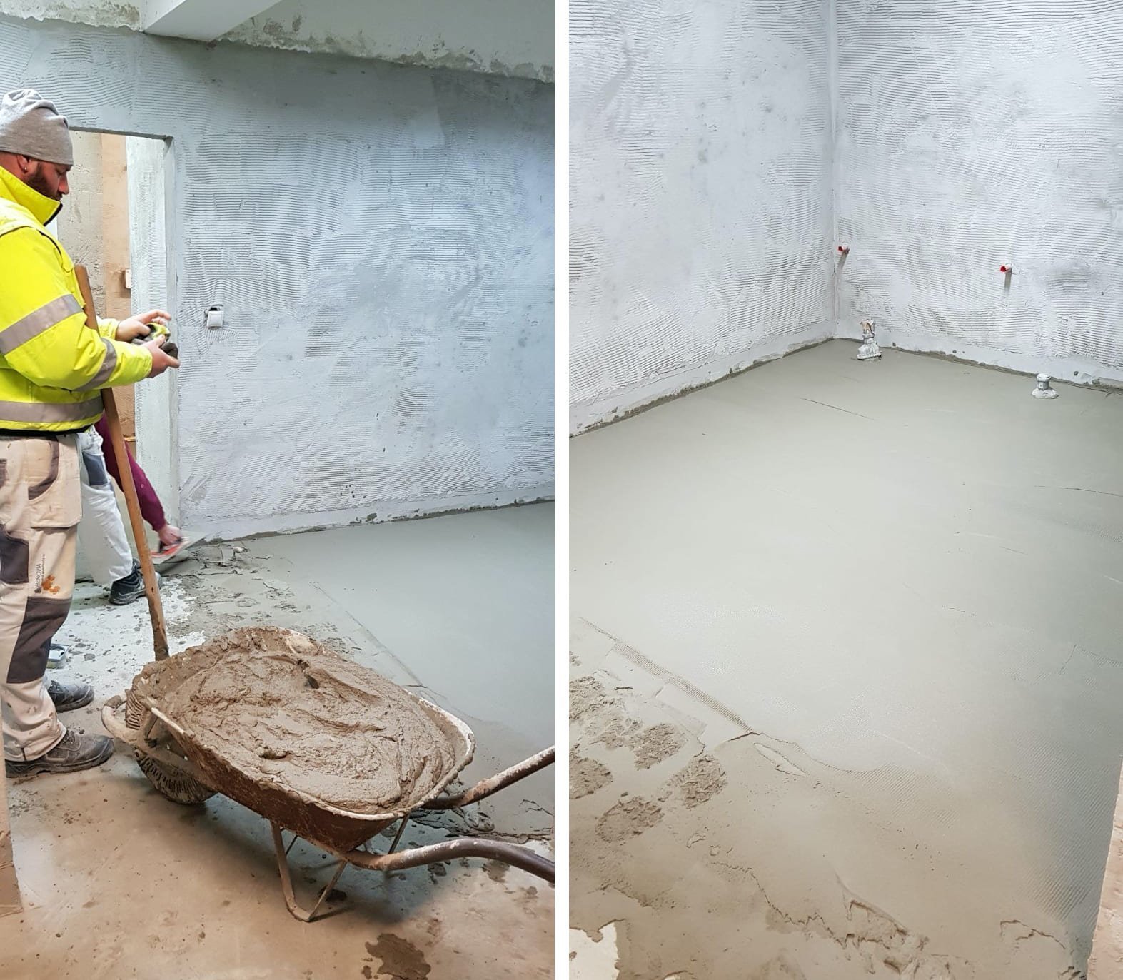 Aby se dosáhlo doporučená tloušťka omítky, obvykle se tato nanáší ve dvou nebo podle potřeby i ve třech vrstvách. Nejdůležitější je první vrstva aplikována přímo na stěny a podlahu koupelny. Důslednost se vyžaduje zejména u spojů stěn a podlah, rohů i v blízkosti odtoků a výpustí a pochopitelně u dilatací. Právě realizaci těchto detailů třeba během práce věnovat zvýšenou pozornost.