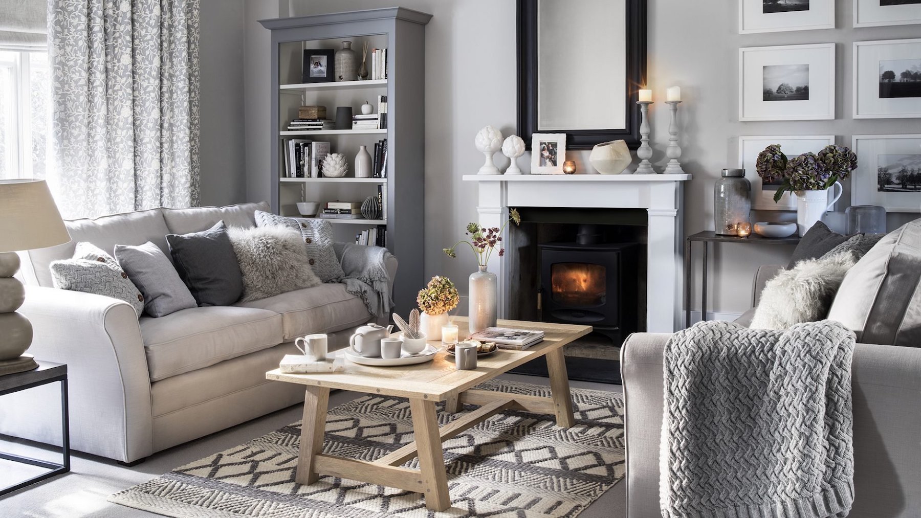 Pokud jde o zařízení interiéru ve stylu hygge, vládne tu hřejivý, světlý a na bytové doplňky nenáročný minimalismus. Interiér je často monochromatický bez výrazných akcentů. Výjimkou však mohou být černé akcenty na kovových prvcích. Domovům v hygge vládne zejména bílá, světle šedá, béžová a hnědá barva. Tyto základní barvy se kolikrát příjemně prolínají s pastelovými tóny. Pokud jde o materiály, prim hrají ty, které evokují ruční výrobu. Uplatnění tak zde najde dřevo z dubu nebo ořechu, v zástupu za ním i ratan, juta a kokos. Hřejivou atmosféru dotváří měkoučké plédy a deky s výraznou pletenou strukturou, heboučké kožešiny, polštářky, ale rovněž tolik důležitá kamna, lucerny, svícny a aromatické lampy. Své místo zde mají také květiny, které prostor oživí, a zrcadla, jež ho opticky zvětší.