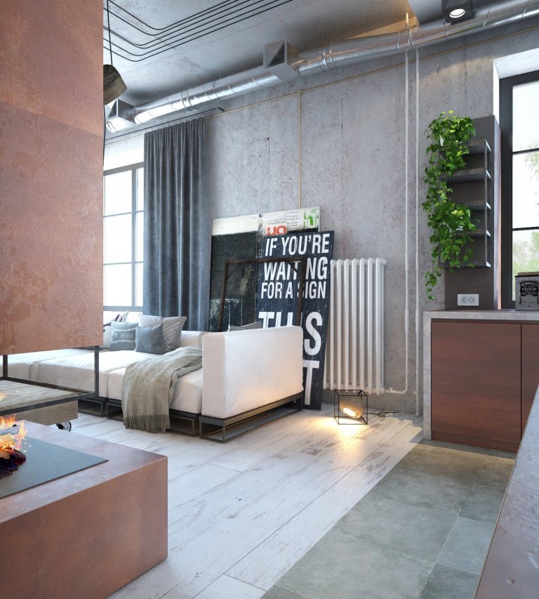Architekti odvedli dobrou práci při vizualizaci tohoto 280 metrů čtverečních velkého bytu. Cílem projektu bylo rozbít zajeté stereotypy, které obecně panují okolo průmyslově zařízených interiérů, které jsou prostorné, ale poměrně chladné a neosobní. Architekti se snažili držet základních prvků, kterými jsou beton, dále třeba i poodkrývané potrubí, které dodá prostoru ještě více "surový" vzhled. Díky zařazení teplejších barev má prostor působit více pohodlněji a útulněji. Tato vizualizace je jasnou ukázkou toho, jak si lze zařídit i své bydlení.