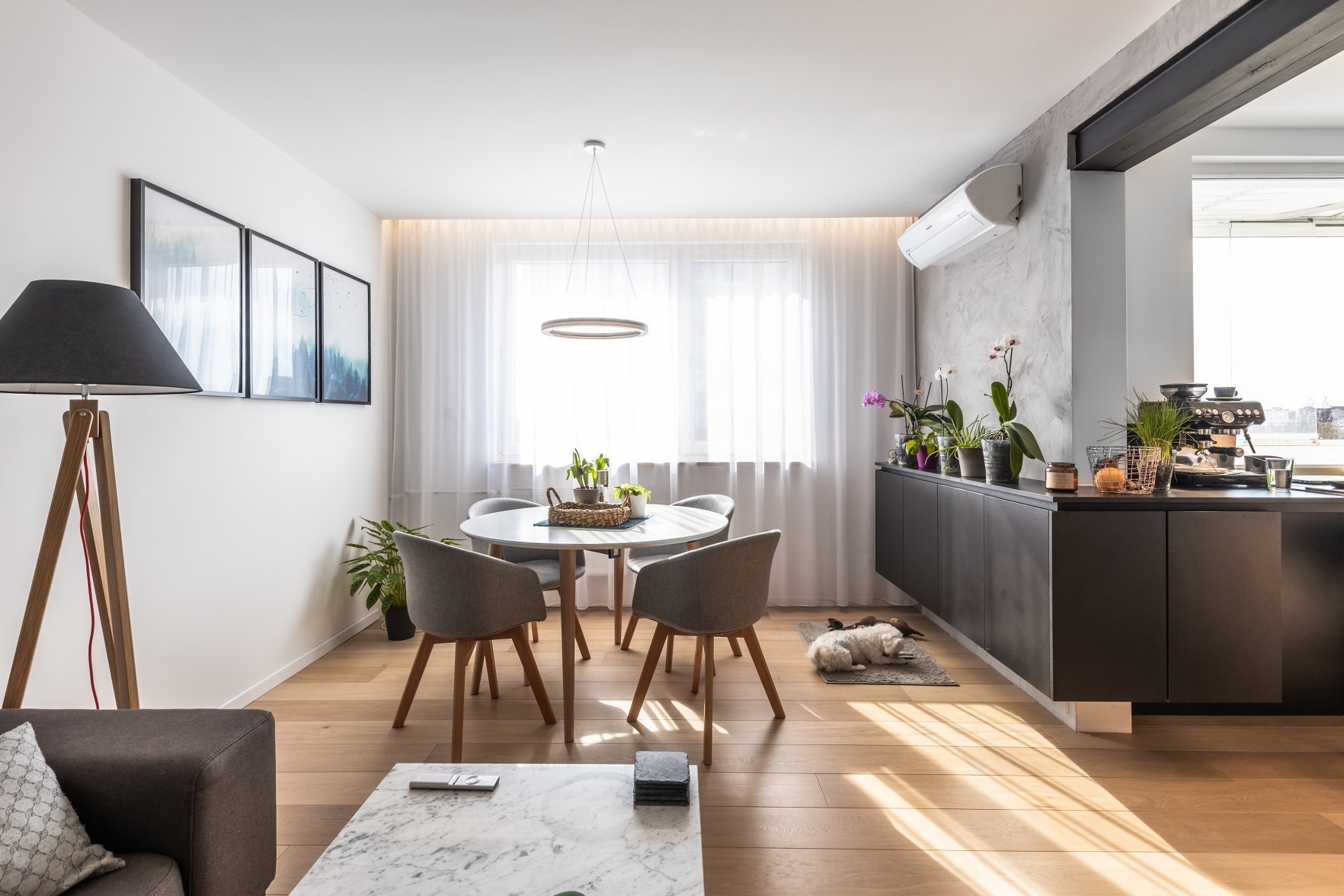 Mladý pár se přemístil do Bratislavy již v době svých studií. Po dokončení studia se však ve městě rozhodli zůstat a koupili si částečně zrekonstruovaný byt ze sedmdesátých let v bratislavské Petržalke. Tato rekonstrukce však nebyla dostatečná, proto se jej rozhodli po devíti letech od koupě změnit k obrazu svému.