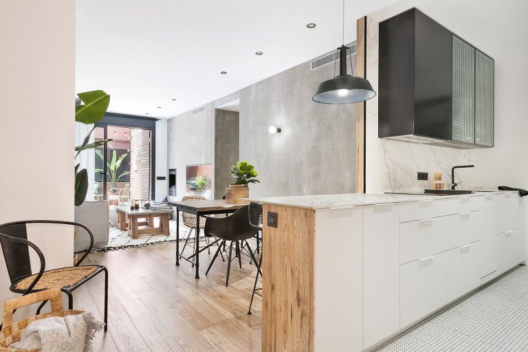 Tento byt se nachází v na první pohled zchátralé kancelářské budově v Barceloně, ve Španělsku. Byl kompletně zrekonstruován designérskou společností Dröm Living a stal se příjemným místem k bydlení. Interiéru vévodí jednoduchý a čistý design s industriálními prvky.