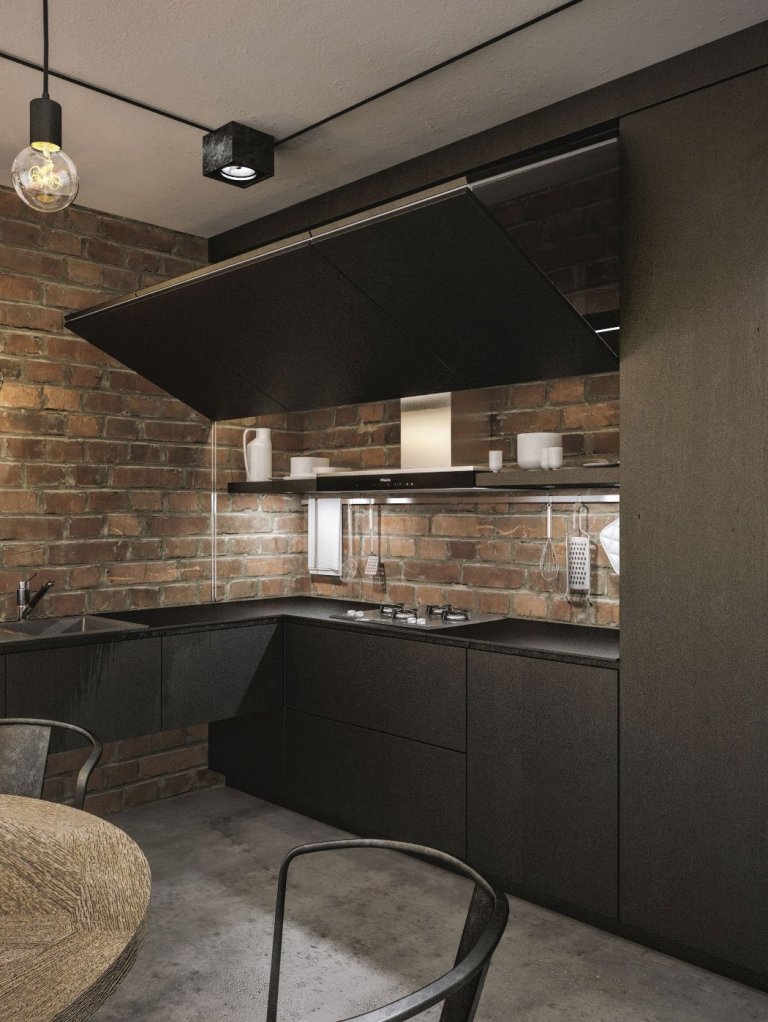 Industriální základ architekti v bytě ponechali a s opatrností zrekonstruovali. Jako dominanta bytu byla zvolena podlaha z leštěného betonu, k níž dokonale ladí cihlové zdi i přiznané elektroinstalace. To je však z typicky industriálního bydlení vše. Odsud se architekti pustili do experimentů s netradičním řešením. Oproti klasickým loftům, jimž vévodí starý nábytek, do tohoto bytu architekti zvolili moderní designový pocházející ze známých showroomů. Ačkoliv tento nábytek vypadá jako industriální, jde o jeho luxusnější a lepší verzi.