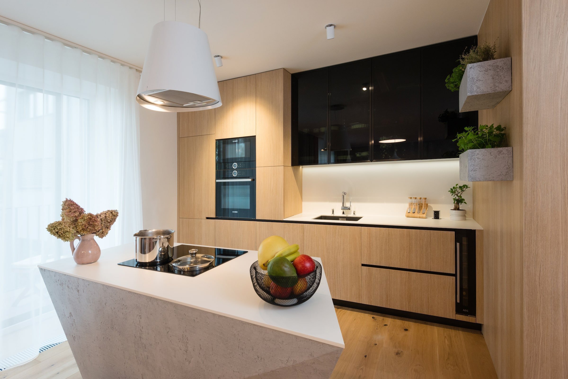Žena, která pracuje jako manažerka a většinu svého času tráví na zahraničních pracovních cestách, snila o jediném. O místě, jemuž by mohla říkat domov ve chvílích, kdy se bude vracet ze svých cest. Ke spolupráci na tvorbě interiéru svého bytu si pozvala architekty z ateliéru FullHouse Architecture. Architekti byli z práce pro tuto ambiciózní ženu nadšeni. Již při první společné schůzce se byli schopni domluvit, jakým směrem by se měl interiér ubírat. Mezi prvky, které si žena přála do svého domova začlenit, patřil zejména beton, bílá barva a dubové dřevo. Svým způsobem jde o bydlení na způsob hotelového pokoje.