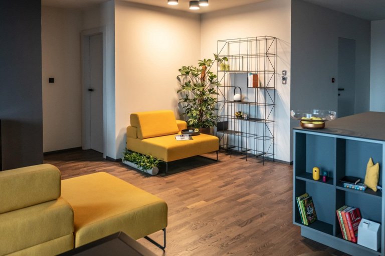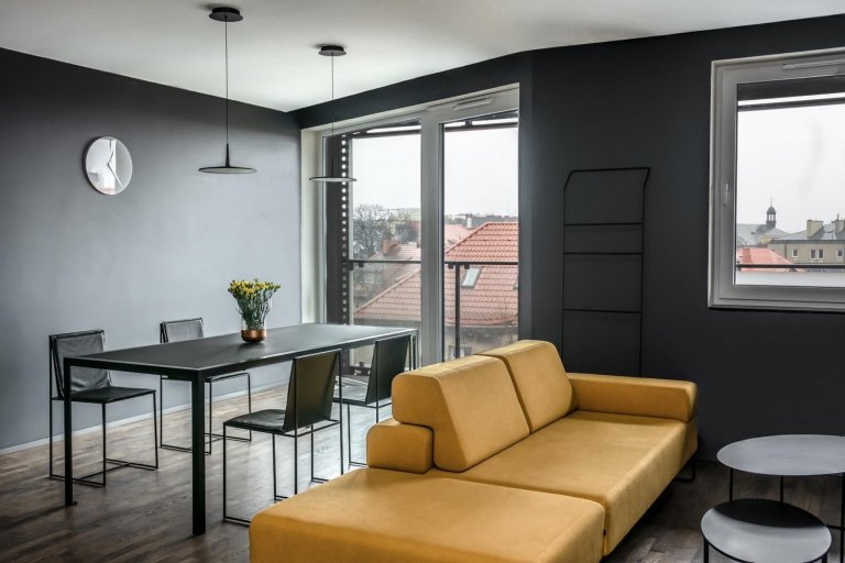 Wilda, jižní část Poznaně v západním Polsku, je tvořená řadou starších i mladších činžovních domů obklopených zelení. V jednom z těch nedávno postavených se nachází byt, který prošel výraznou proměnou. Dominantní šedou barvu v něm projasňují sytě žluté akcenty.
