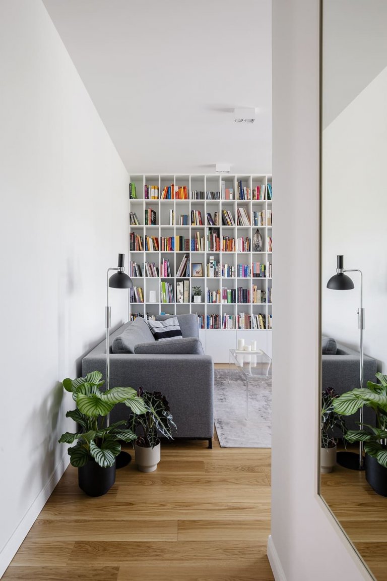 Dnes navštívíme byt, který v minimalistické verzi předvádí přitažlivý eklektický styl spojující staré a nové prvky. Jeho dominantou je velká knihovna, v jejíž blízkosti se nachází překrásný kulatý jídelní stůl s nádechem starých časů.