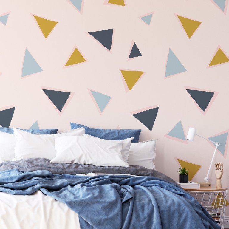 Akcentní stěny - Použití geometrických vzorů na jedné stěně může vytvořit výrazný akcent a stane se středobodem místnosti. Můžete zvolit kontrastní barvy, aby vzor vynikl, nebo jemné odstíny pro subtilnější efekt. Akcentní stěna s geometrickým vzorem okamžitě upoutá pozornost a dodá místnosti dynamiku.