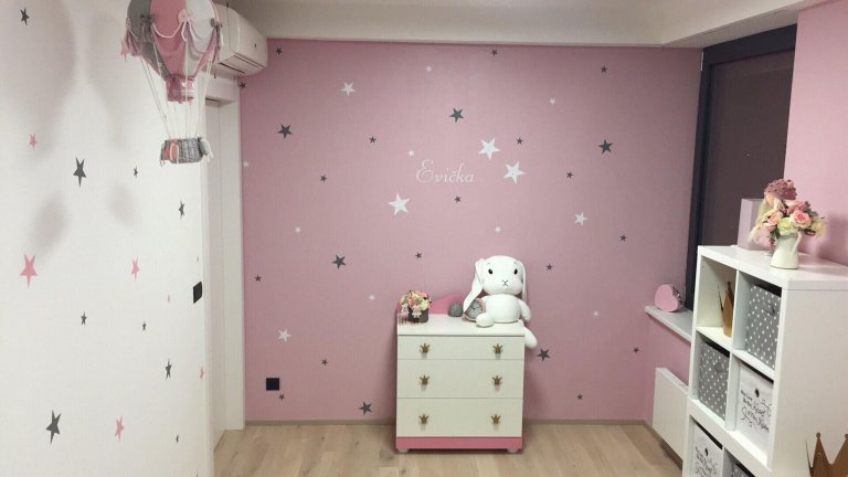 Teď si budu trošku protiřečit. V předchozím odstavci jsem psala o tom, že je lepší použít méně větších samolepek než spoustu malinkých a ty rozházet po stěně. Vyjímku tvoří případy, kdy použijeme na stěnu samolepky v jednom a tom samém motivu. Příkladem mohou být dnes velmi oblíbené samolepky na zeď s motivy jako jsou hvězdičky, puntíky či mráčky. Ale ani tam se to nesmí přehnat.