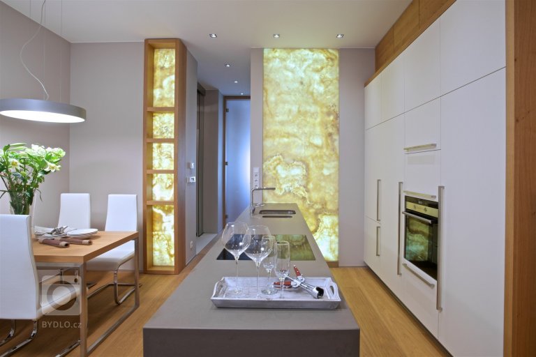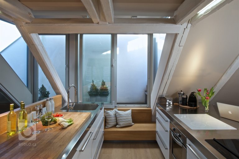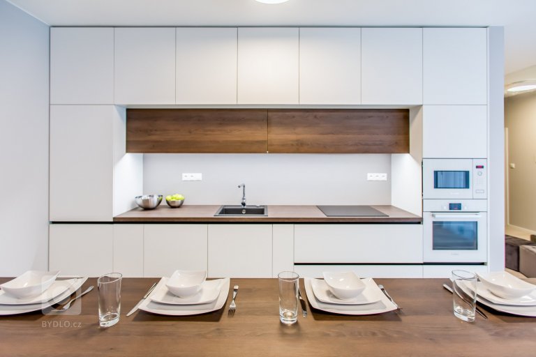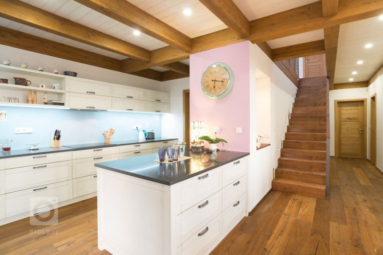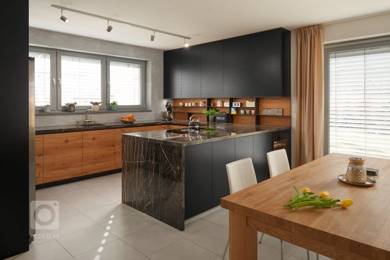 - Místo na uschování potravin (ať už malá místnost nebo skříňka – oblíbené jsou hluboké zásuvky, kam se vleze vše potřebné – a to přehledně)