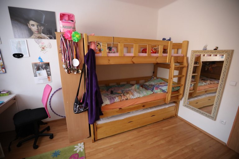 Maminka, která dosud spávala u Aničky v pokojíčku, také jistě ocení rozkládací sedačku v nově vzniklém obývacím prostoru. Sama Anička si pak přála velké zrcadlo, před kterým by mohla tancovat. Designéři tak pro ni rovnou vykouzlili zrcadlovou stěnu s baletní tyčí, která jen podtrhuje celkově něžné bydlení.