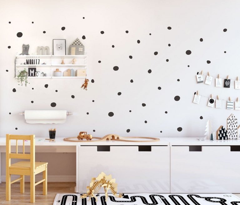 Ve světě tapet jsou čím dál víc oblíbené také samolepicí tapetové folie. Snadno se aplikují (nalepíte je tak, že postupně sundáváte krycí papír ze zadní strany folie, lepivou částí přikládáte k povrchu a vyhlazujete houbičkou nebo hadříkem) a využít se dají nejen na zdi. Však my vás hned přesvědčíme v nápadech, co se dá z tapet v dětském pokoji vykouzlit.